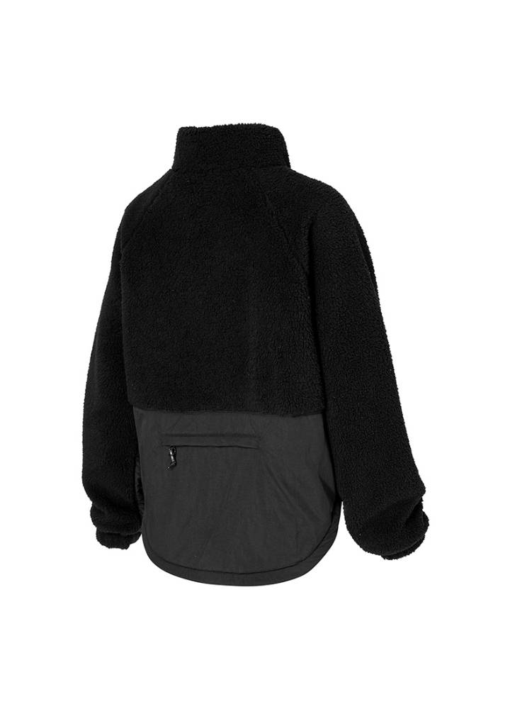 Woven Patch Fleece Zip-Up Jacket Black