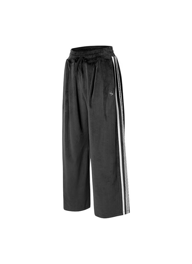Velour lace-line wide pants
